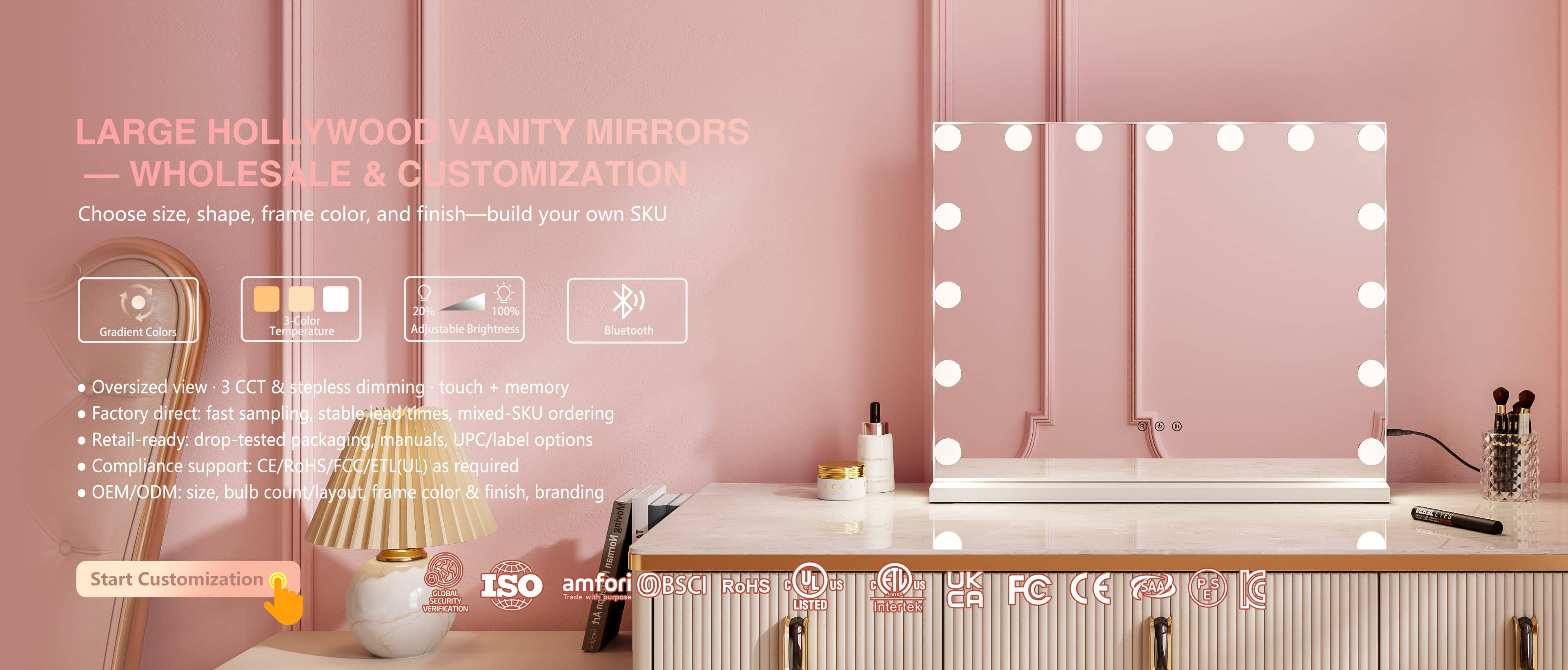 Founded in 1999, JYD Mirror is a national high-tech enterprise committed to the R&D and manufacturing of smart LED light mirrors. Our 100,000㎡ facility in Zhongshan integrates injection molding, precision CNC machining, SMT processing, automated assembly, and eco-friendly packaging. We own: 71 injection molding machines for round-the-clock precision molding 3 SMT lines with AOI full inspection 15 centralized air-conditioned production lines (11 for makeup mirrors, 4 for bathroom mirrors) In-house automated glass cutting, edging, frosting, laser engraving, and laminating systems Our factory meets international environmental and quality standards with certifications including BSCI, GSV, ISO14001, ISO9001, UL, ETL, CE, RoHS, and UKCA. With 60+ engineers and over 160 mirror design patents, we provide comprehensive OEM/ODM services including mold development, logo customization, app-controlled features, surface finishes (UV, rubber oil, chrome plating), and intelligent lighting systems. JYD Mirror proudly partners with L’Oreal, Estee Lauder, Disney, and Shiseido, and has established sales channels in Walmart, COSTCO, Sam’s Club, JD.com, and Amazon.